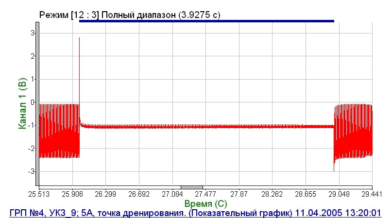 Електрометрична діагностика об'єкту виконувалася «Універсальним реєстратором «Прима-2005», при спільній експлуатації з переривачами «ПС-80». Аналіз наявних графиків дозволяє отримувати важливу інформацію, щодо впливу струму поляризації на діагностуємий об'єкт.